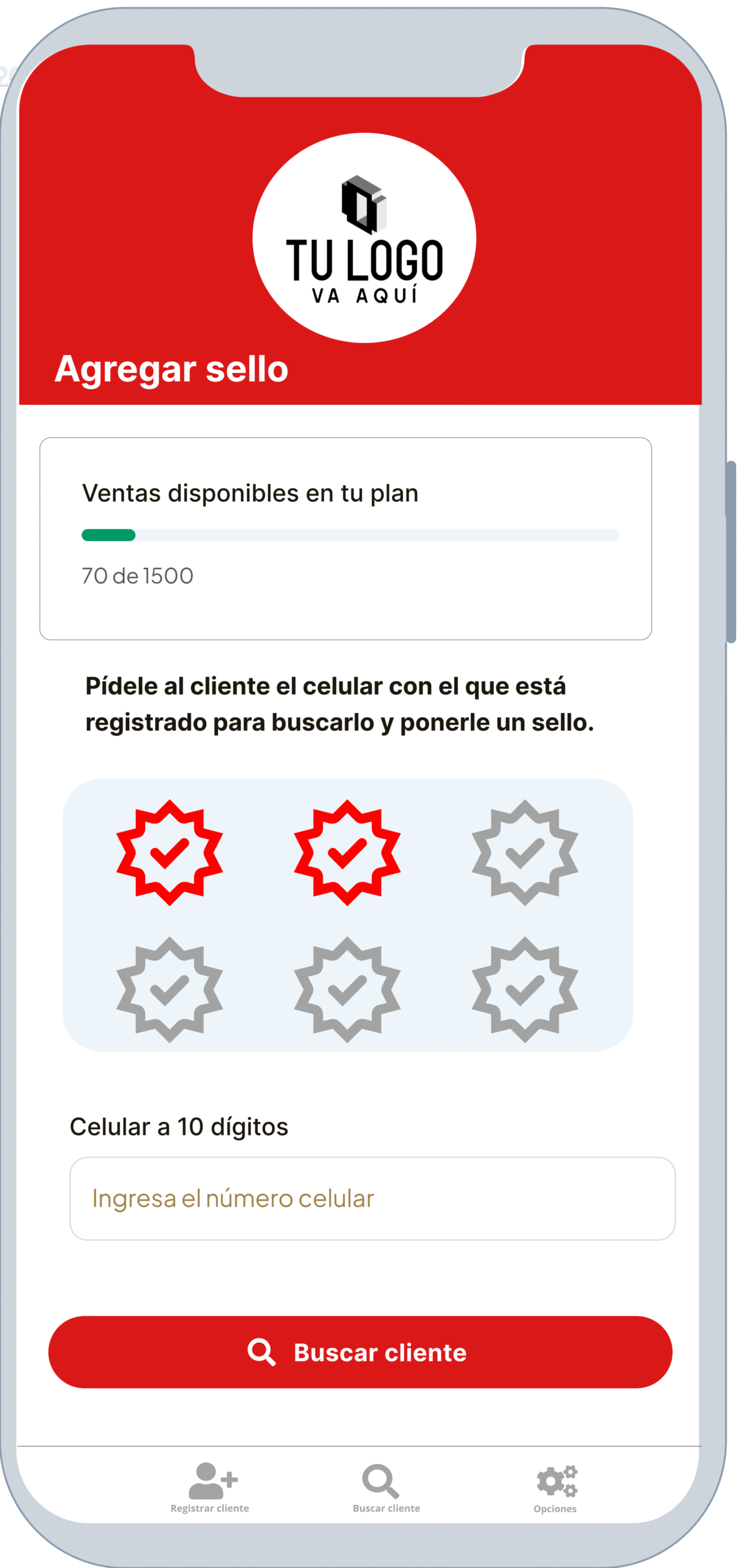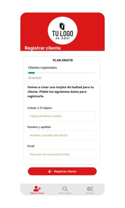 Desde ahí vas a registrar a tus clientes para que tengan su tarjeta, y les vas a poner sellos.